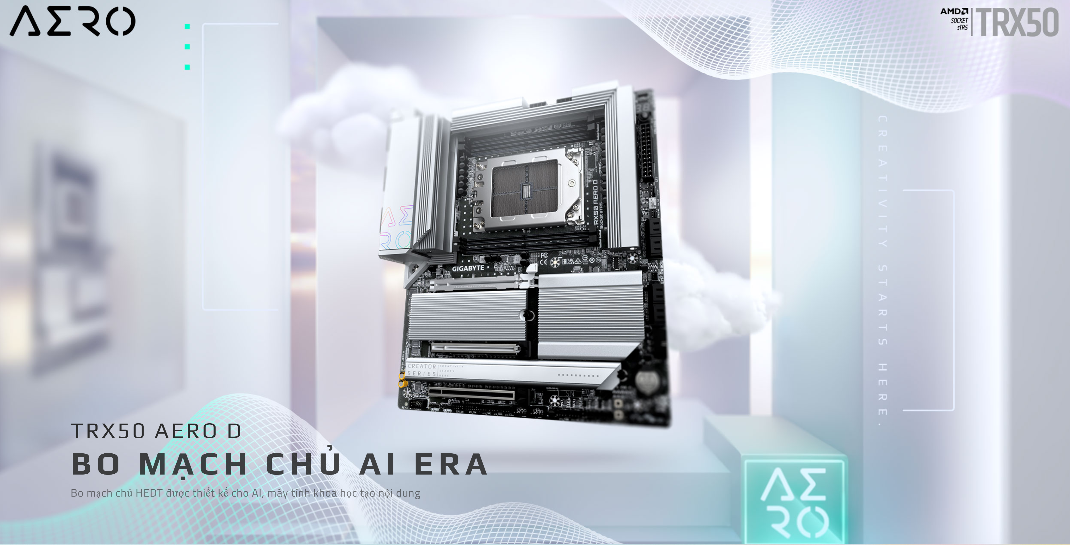 GIGABYTE TRX50 AERO D: Sức mạnh và sự ổn định cho những ý tưởng vĩ đại. Nền tảng chuyên nghiệp, hiệu năng bứt phá, dành riêng cho các nhà sáng tạo nội dung - BP STORE
