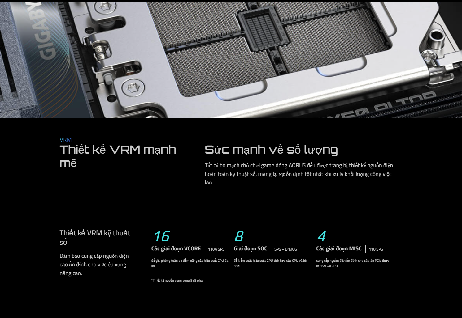 Hệ thống nguồn và tản nhiệt đỉnh cao: Mainboard được trang bị thiết kế nguồn kỹ thuật số 16+8+4 pha, đảm bảo cung cấp nguồn điện sạch và ổn định cho CPU, ngay cả khi ép xung. Hệ thống tản nhiệt được tối ưu hóa với VRM Thermal Armor Advanced và M.2 Thermal Guard giúp duy trì nhiệt độ tối ưu cho các linh kiện quan trọng, đảm bảo hiệu suất bền bỉ và ổn định trong suốt quá trình hoạt động.