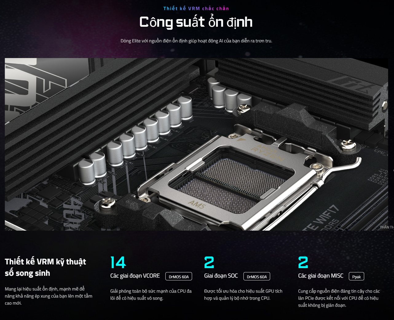 RAM: 4 x DDR5 DIMM, tối đa 256 GB, hỗ trợ 8200(O.C) MT/s