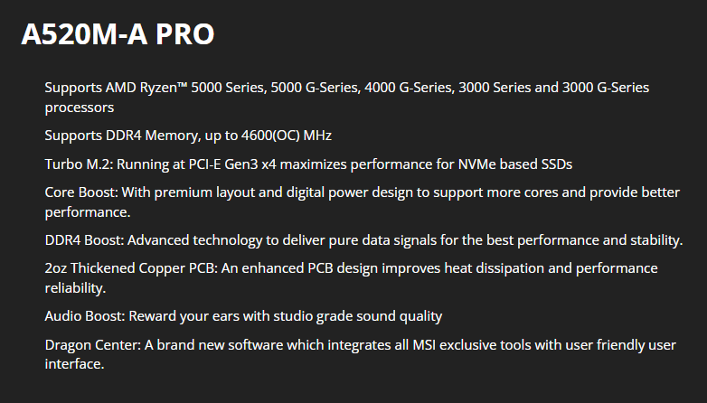 Mainboard MSI A520M-A PRO
