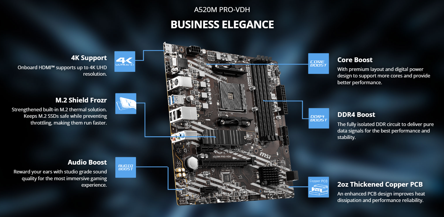 Mua ngay Mainboard MSI A520M PRO-VDH tại BP STORE để nâng cấp dàn PC của bạn lên một tầm cao mới, bứt phá mọi giới hạn.