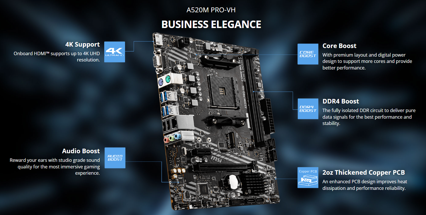 Mua ngay Mainboard MSI A520M PRO-VH tại BP STORE để nâng cấp dàn PC của bạn lên một tầm cao mới, bứt phá mọi giới hạn.