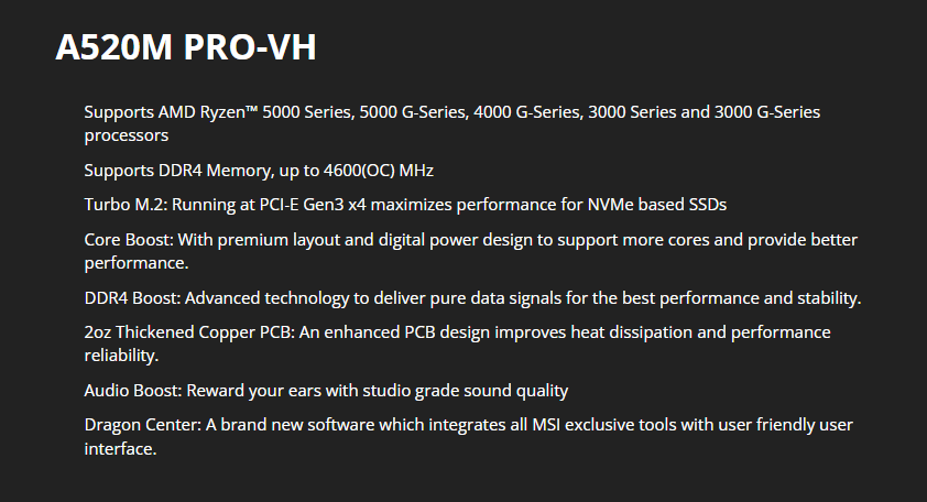 Mainboard MSI A520M PRO-VH