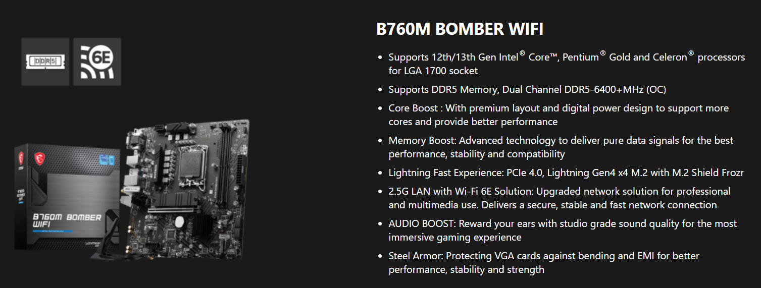 Mainboard MSI B760M BOMBER DDR5