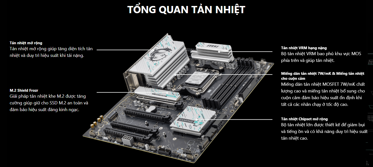 M.2 Shield Frozr: Tản nhiệt dành riêng cho ổ cứng SSD M.2, ngăn chặn hiện tượng giảm tốc độ truy xuất dữ liệu do nhiệt độ tăng cao.