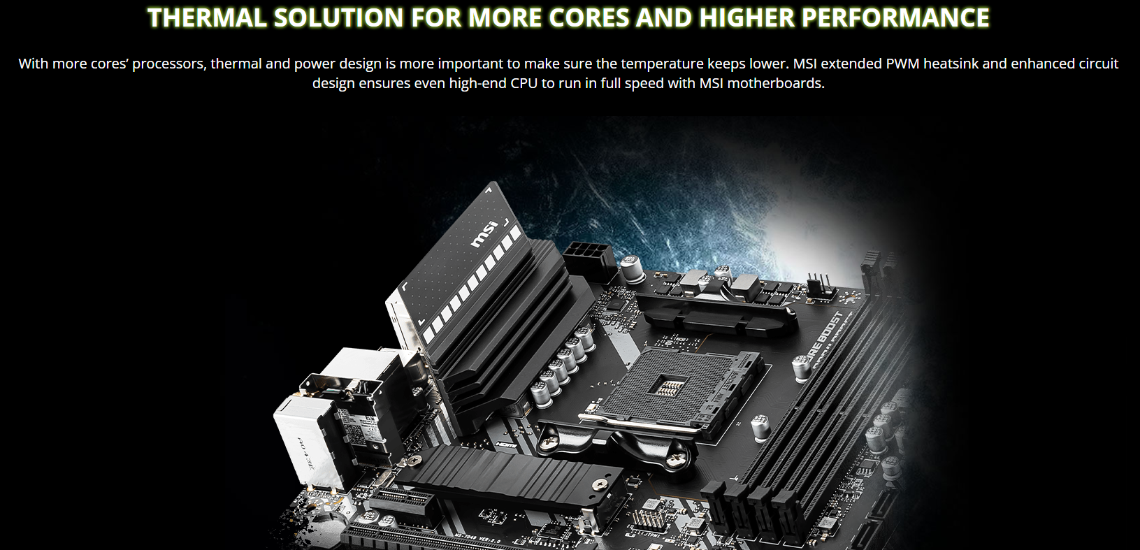 Khác với các dòng A520 thông thường, MAG A520M BAZOOKA WIFI sở hữu cụm tản nhiệt PWM mở rộng cực lớn. Thiết kế này giúp duy trì nhiệt độ ổn định cho dàn VRM, cho phép hệ thống vận hành liên tục ở hiệu suất cao mà không bị sụt giảm xung nhịp, đặc biệt quan trọng khi bạn sử dụng các dòng CPU đa nhân như Ryzen 5 5600 hay Ryzen 7 5700X.