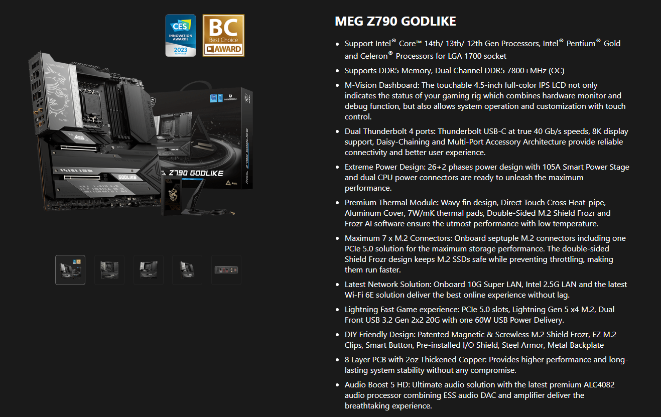 Mainboard MSI MEG Z790 GODLIKE không dành cho số đông. Nó dành cho những người không chấp nhận sự thỏa hiệp, những người muốn sở hữu thứ tốt nhất, nhanh nhất và đẹp nhất. Với GODLIKE, giới hạn duy nhất chính là trí tưởng tượng của bạn.