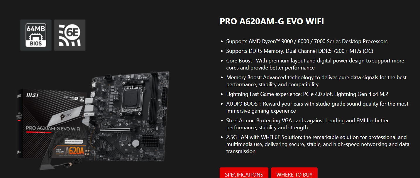 Mainboard MSI PRO A620AM-G EVO WIFI