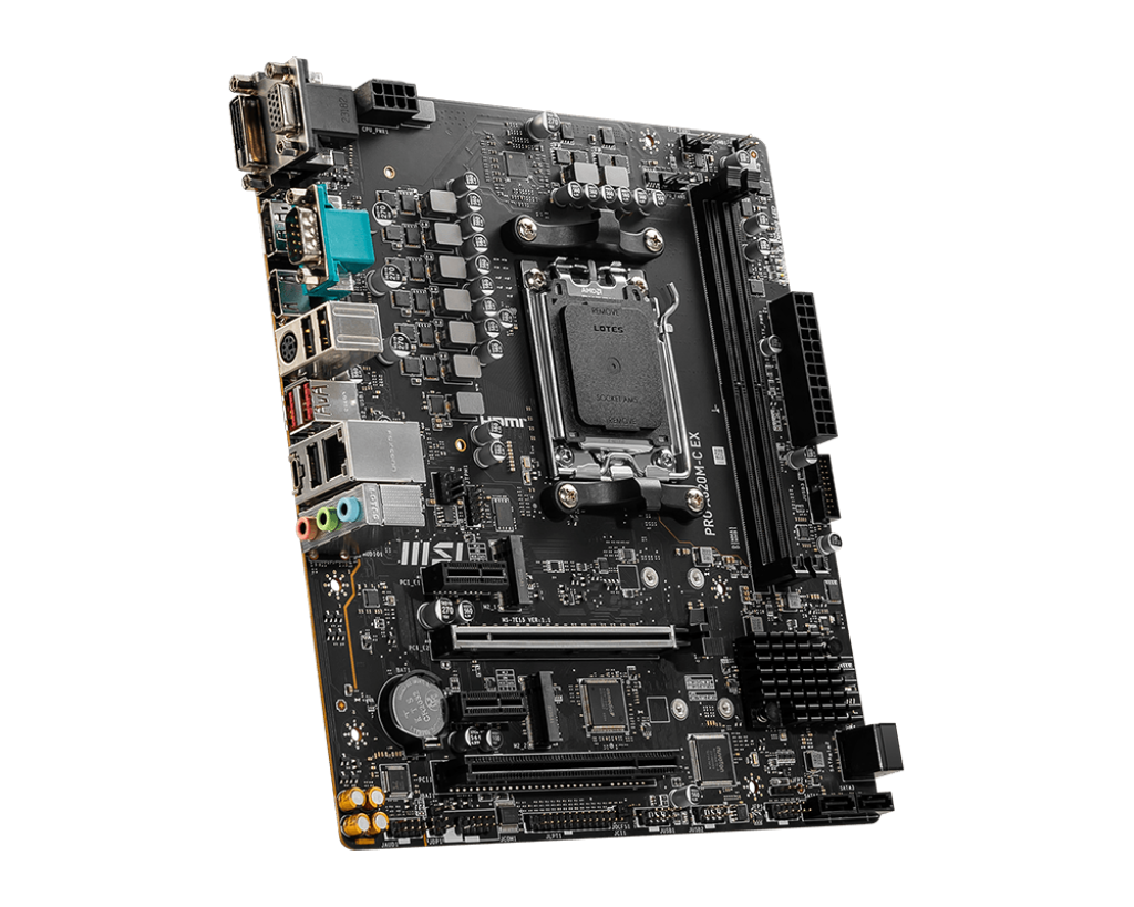 Mainboard MSI PRO A620M-C EX là dòng bo mạch chủ Socket AM5 hiếm hoi trên thị trường dành riêng cho môi trường doanh nghiệp, nhà máy và các hệ thống kỹ thuật đặc thù. Sản phẩm mang đến sự kết hợp độc đáo: sức mạnh từ vi xử lý AMD Ryzen™ và RAM DDR5 tiên tiến, song hành cùng các cổng kết nối truyền thống như COM port và LPT port. Đây là giải pháp hoàn hảo để nâng cấp hệ thống máy tính điều khiển cũ lên một tầm cao mới về hiệu suất mà không cần thay đổi các thiết bị ngoại vi chuyên dụng.
