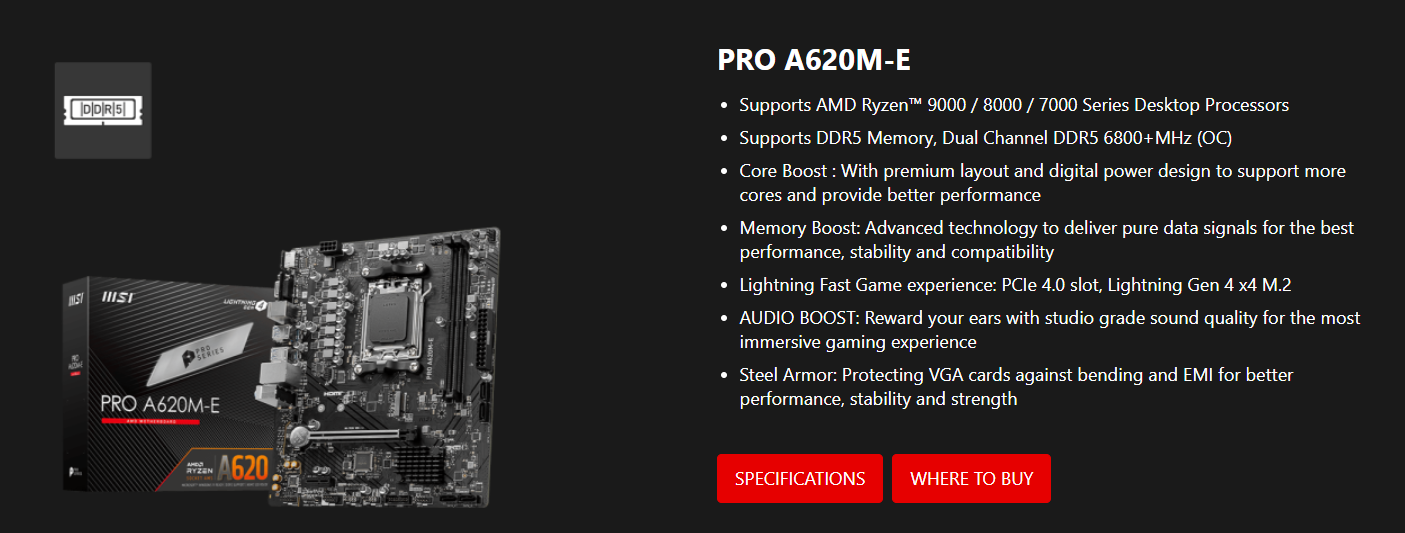 Mua ngay Mainboard MSI PRO A620M-E tại BP STORE để nâng cấp dàn PC của bạn lên một tầm cao mới, bứt phá mọi giới hạn.