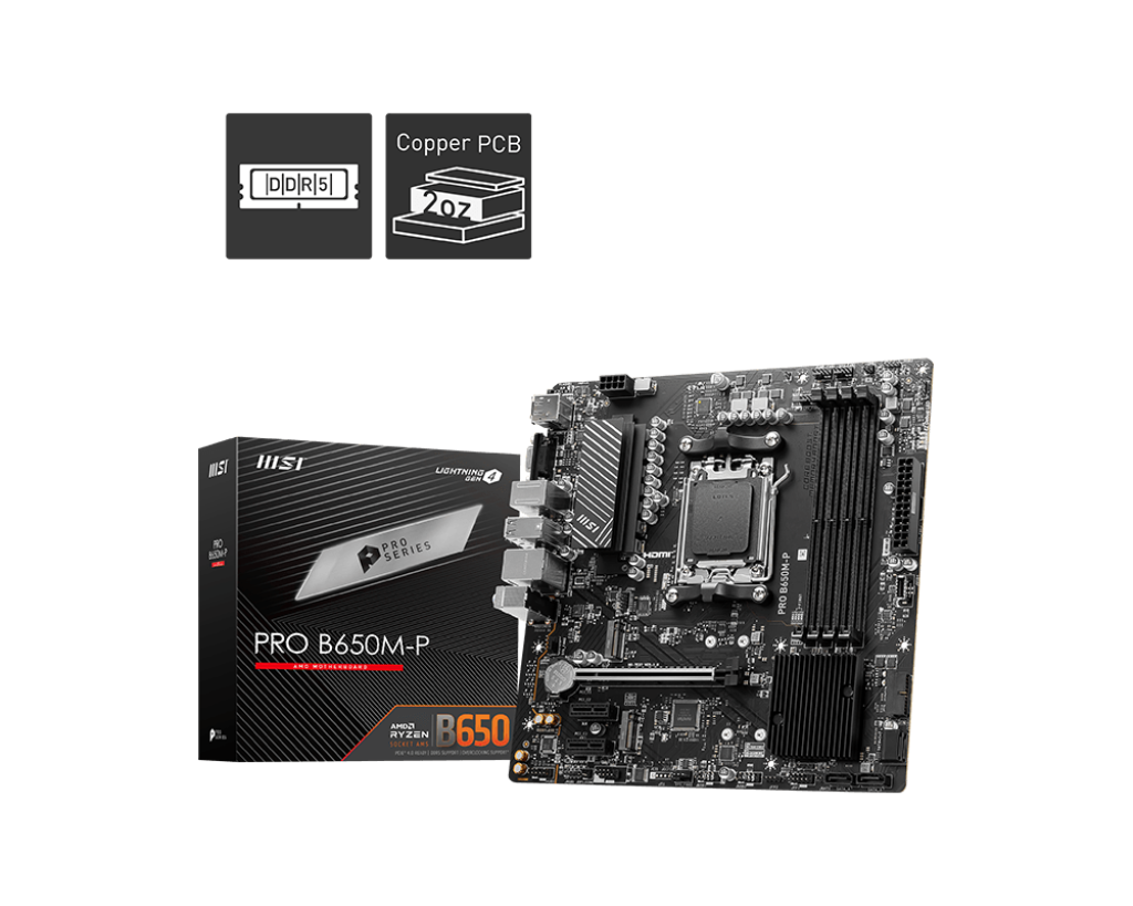 Mainboard MSI PRO B650M-P DDR5 là một trong những mẫu mainboard m-ATX toàn diện nhất trong phân khúc. Với 4 khe RAM và cổng mạng 2.5G siêu tốc, đây là sự đầu tư cực kỳ xứng đáng cho hiện tại và tương lai của bạn.