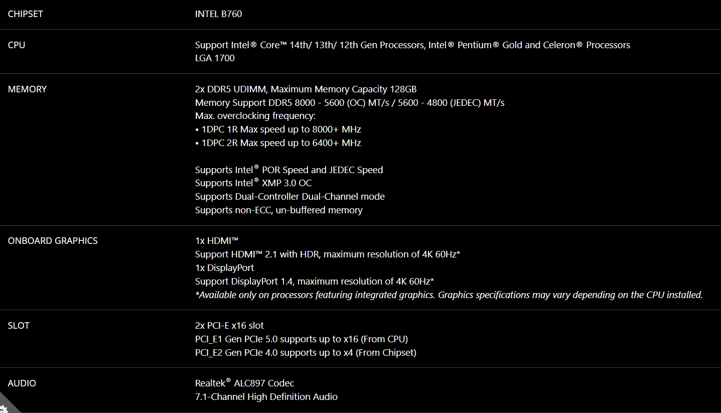Chipset: Intel® B760.