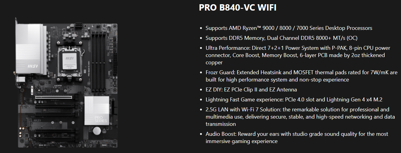 Mainboard MSI PRO B840-VC WIFI