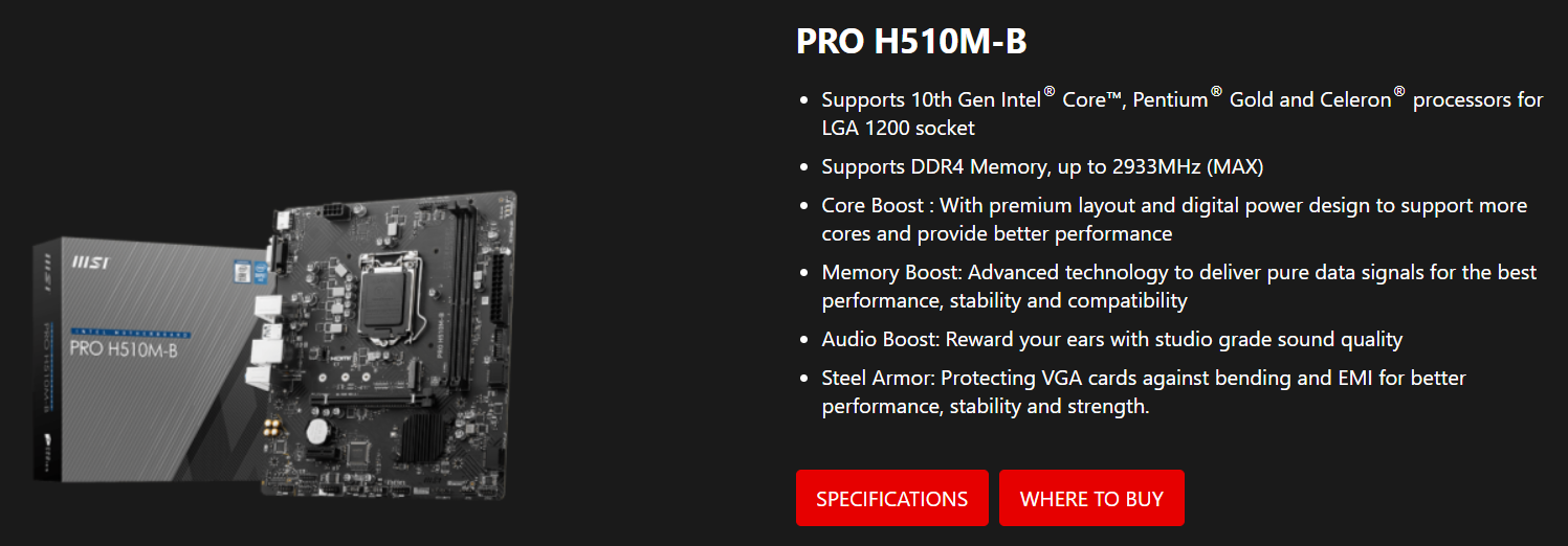 Mainboard MSI PRO H510M-B