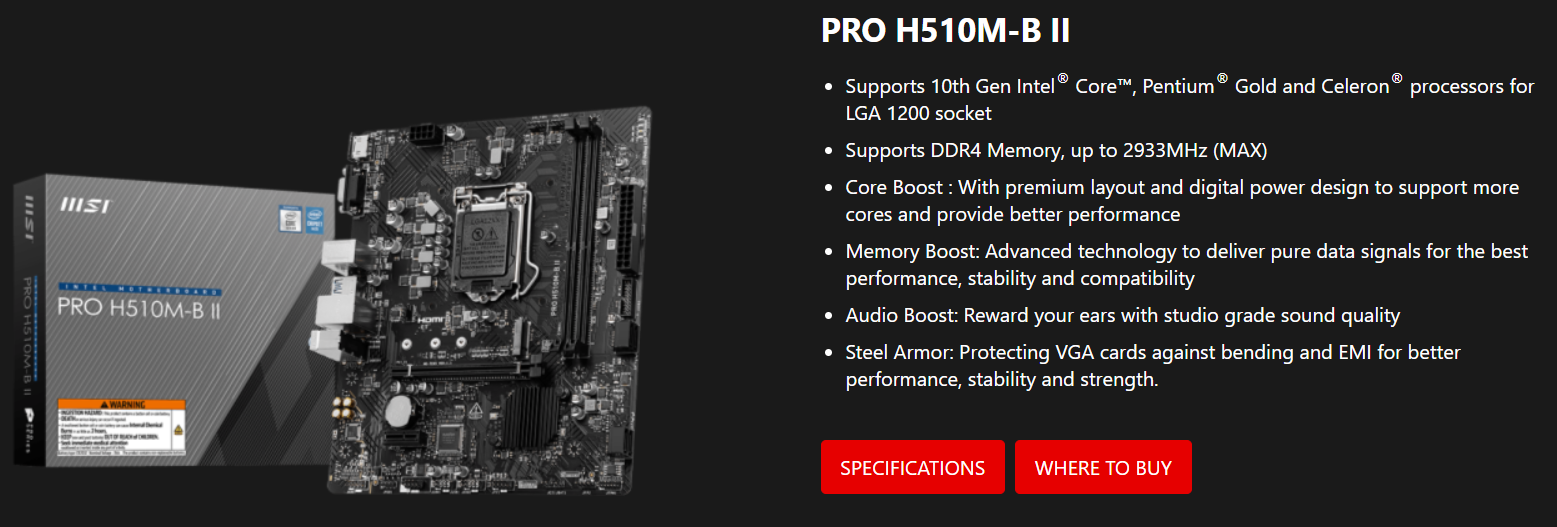 Mainboard MSI PRO H510M-B II