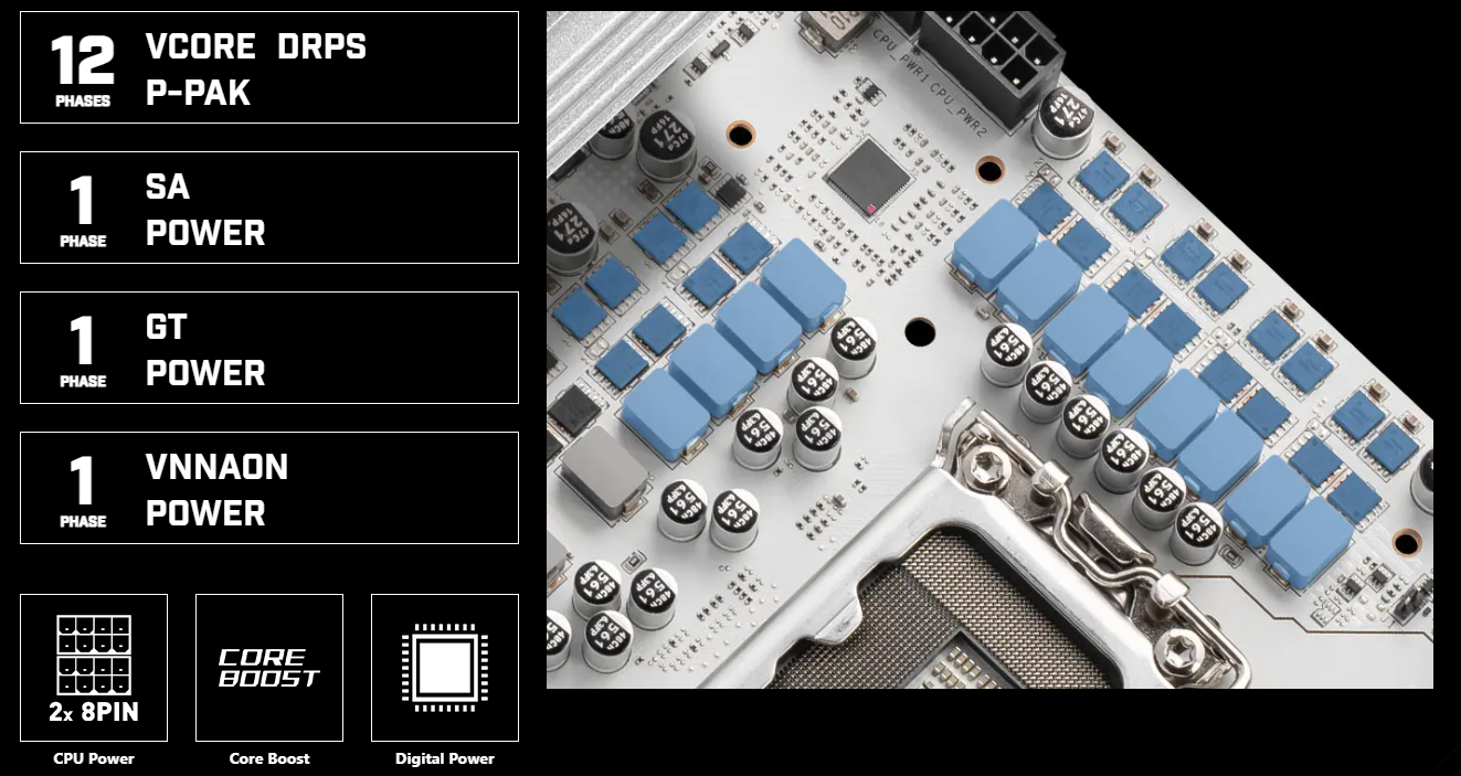 Điểm khác biệt lớn nhất của PRO Z890-S WIFI WHITE chính là lớp áo màu trắng bao phủ từ giáp VRM đến các khe cắm. Không chỉ đẹp, MSI còn sử dụng PCB chuẩn server với 2oz đồng dày dặn, giúp truyền dẫn tín hiệu ổn định và tản nhiệt hiệu quả hơn, đảm bảo hệ thống vận hành bền bỉ 24/7.