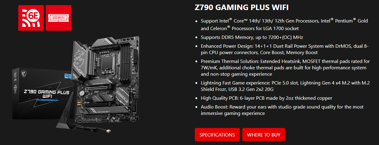 Mua ngay Mainboard MSI Z790 GAMING PLUS WIFI tại BP STORE để nâng cấp dàn PC của bạn lên một tầm cao mới, bứt phá mọi giới hạn.