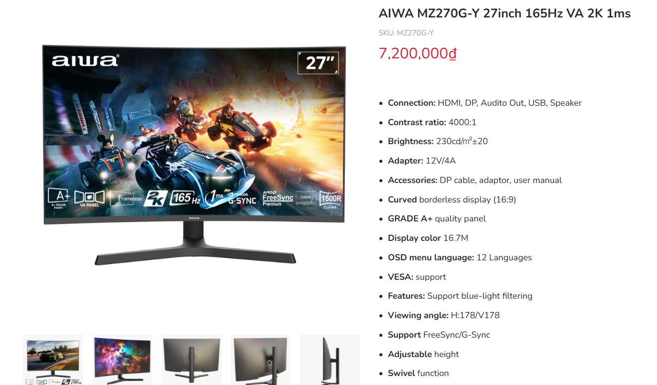 Mua ngay Màn hình AIWA MZ270G-Y để trải nghiệm sự khác biệt. Liên hệ ngay BP Store để nhận báo giá tốt nhất!