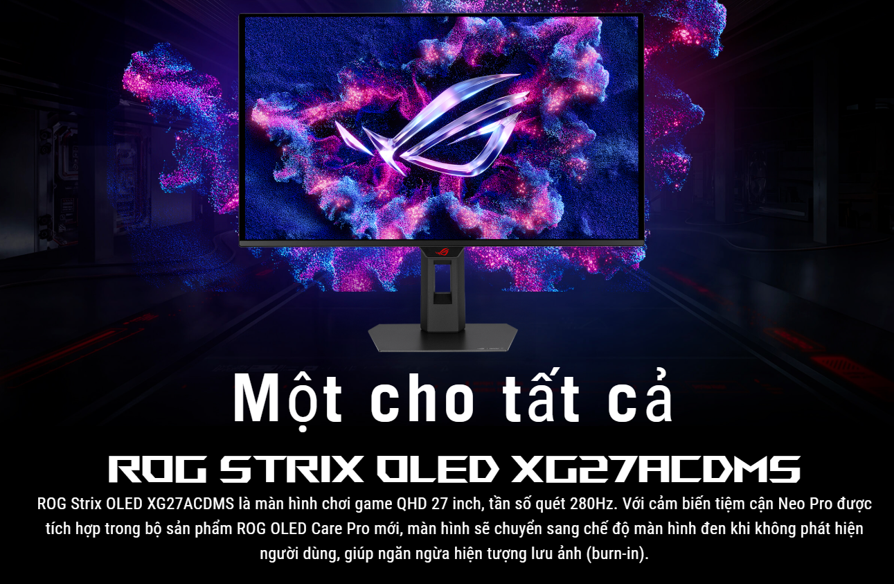 ROG Strix OLED XG27ACDMS là màn hình QD-OLED 26.5 inch QHD 280Hz lý tưởng cho game thủ và người dùng cao cấp. Sở hữu chất lượng hình ảnh vượt trội, tốc độ hiển thị nhanh chóng, cùng thiết kế linh hoạt và công nghệ bảo vệ OLED tiên tiến – đây chính là lựa chọn hoàn hảo cho những ai mong muốn hiệu năng và trải nghiệm thị giác ở đẳng cấp ROG.
