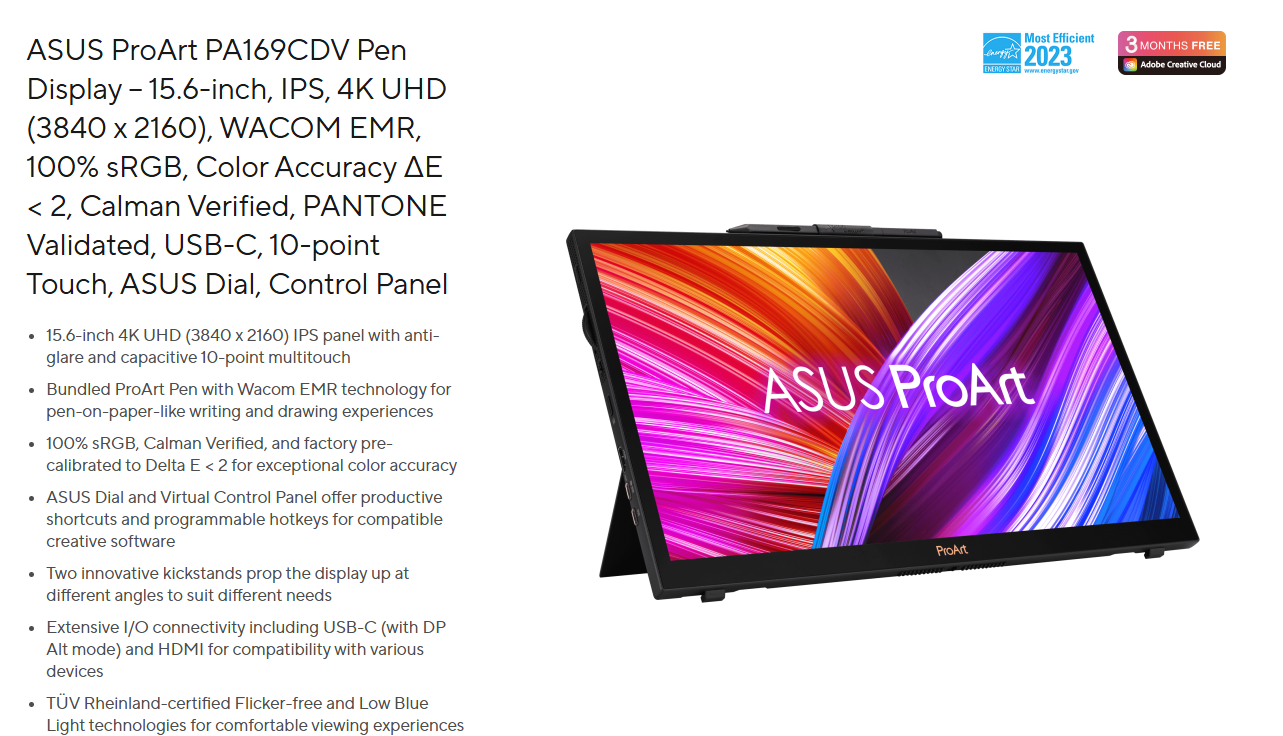 Màn hình Asus ProArt PA169CDV (15.6 inch/60Hz/UHD/IPS)