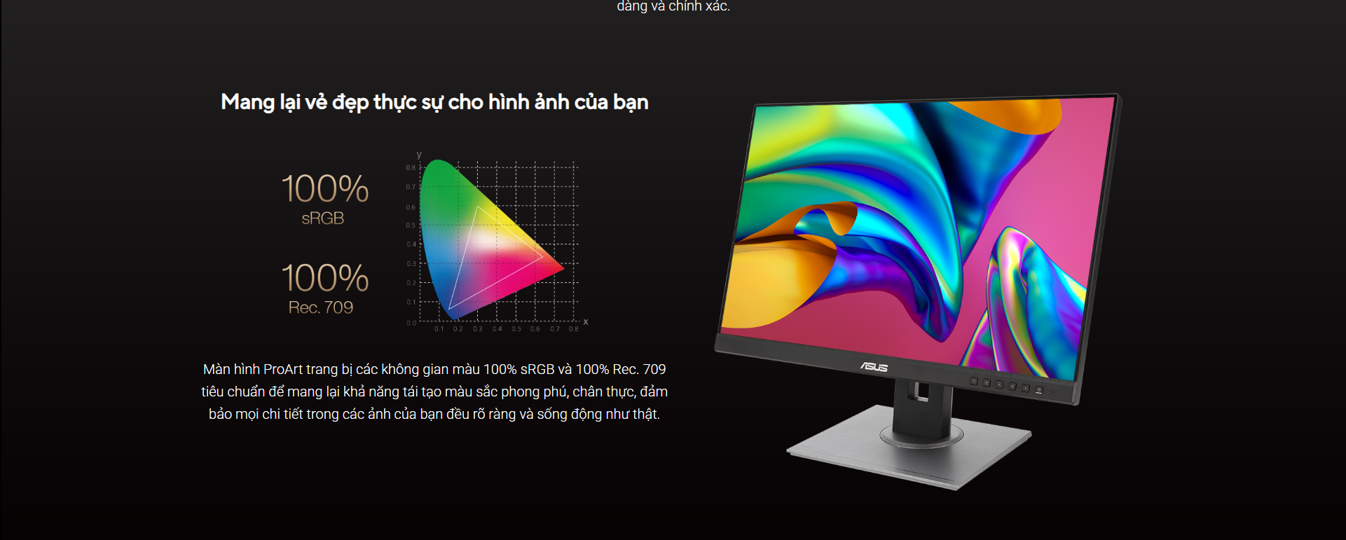 Tấm nền IPS kích thước 24.1 inch với độ phân giải WUXGA (1920x1200) cho vùng làm việc theo chiều dọc rộng hơn, lý tưởng cho trình chỉnh sửa ảnh, timeline dựng phim và lập trình. - ProArt Preset & Palette – chỉnh màu dễ dàng: