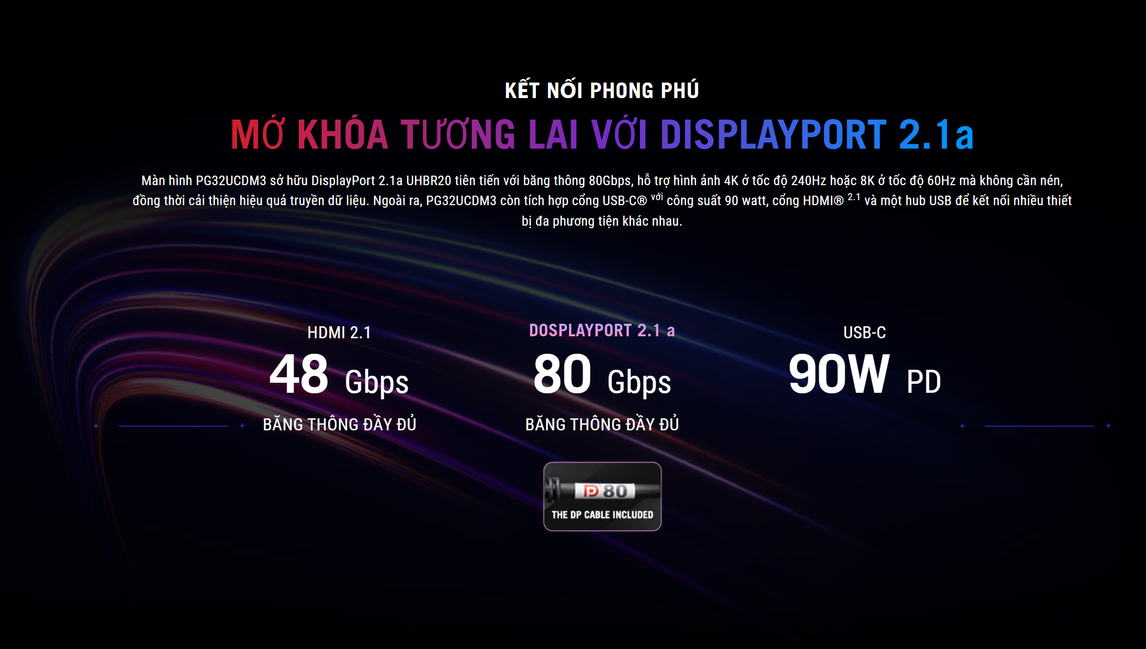 Kết nối tương lai với DisplayPort 2.1 và USB-C 90W