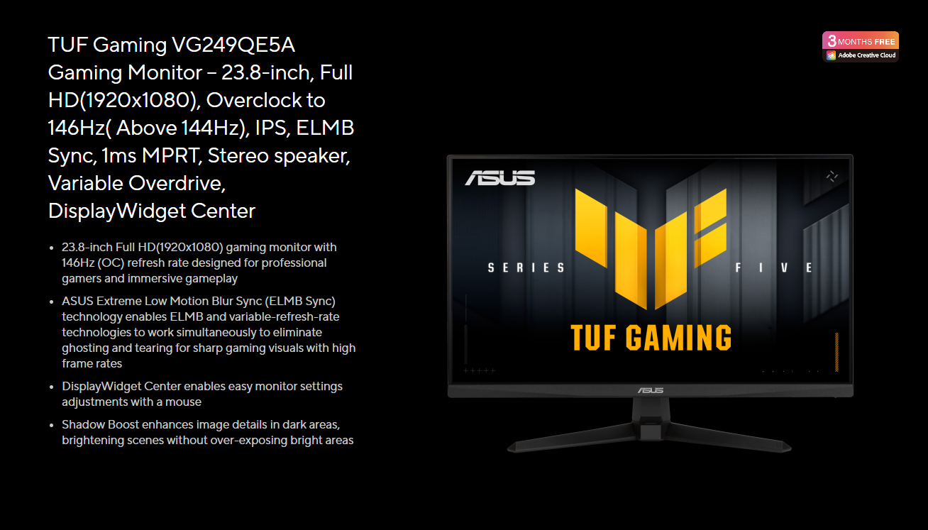Màn Hình ASUS TUF Gaming VG249QE5A-R (23.8 inch, FHD, IPS, 146Hz OC)