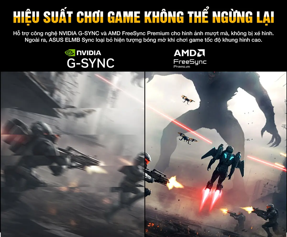 Tích hợp công nghệ ELMB Sync (Extreme Low Motion Blur Sync) độc quyền, cho phép kích hoạt đồng thời cả tính năng giảm mờ chuyển động (ELMB) và công nghệ VRR (Adaptive-Sync). Điều này giúp loại bỏ cả bóng mờ và xé hình cùng lúc, mang lại trải nghiệm chơi game mượt mà, sắc nét.