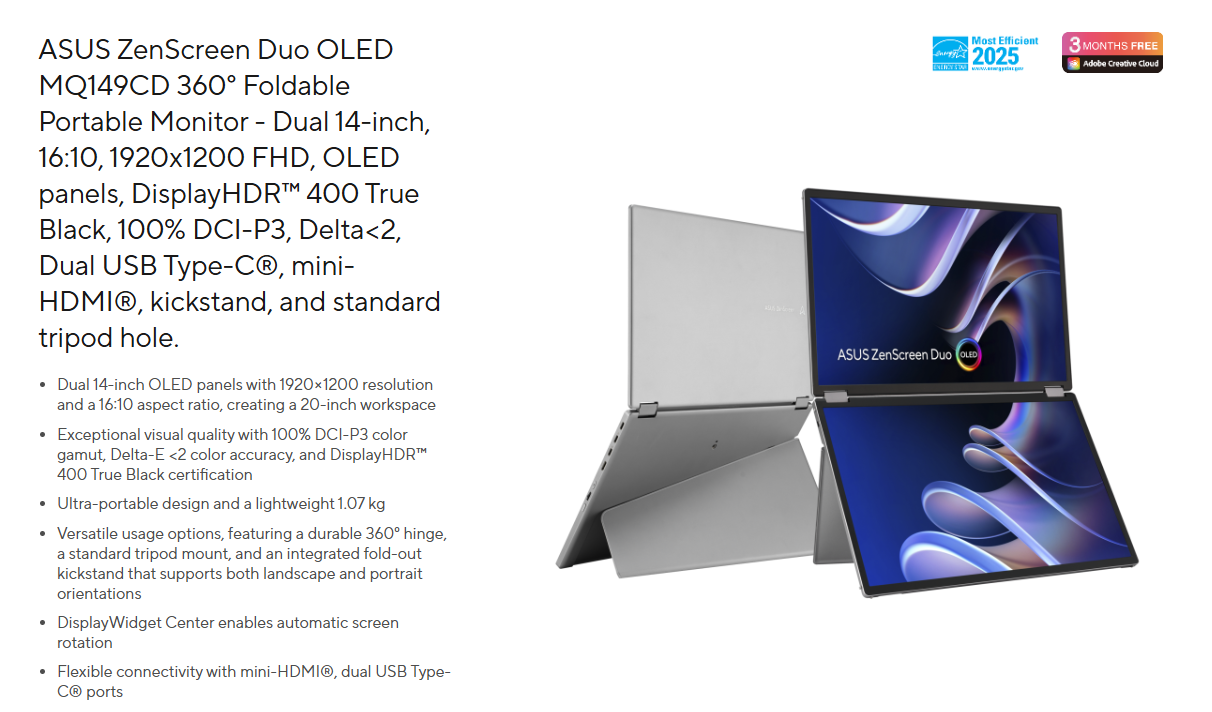 Mua ngay Màn Hình ASUS ZenScreen Duo OLED MQ149CD để trải nghiệm sự khác biệt. Liên hệ ngay BP Store để nhận báo giá tốt nhất!