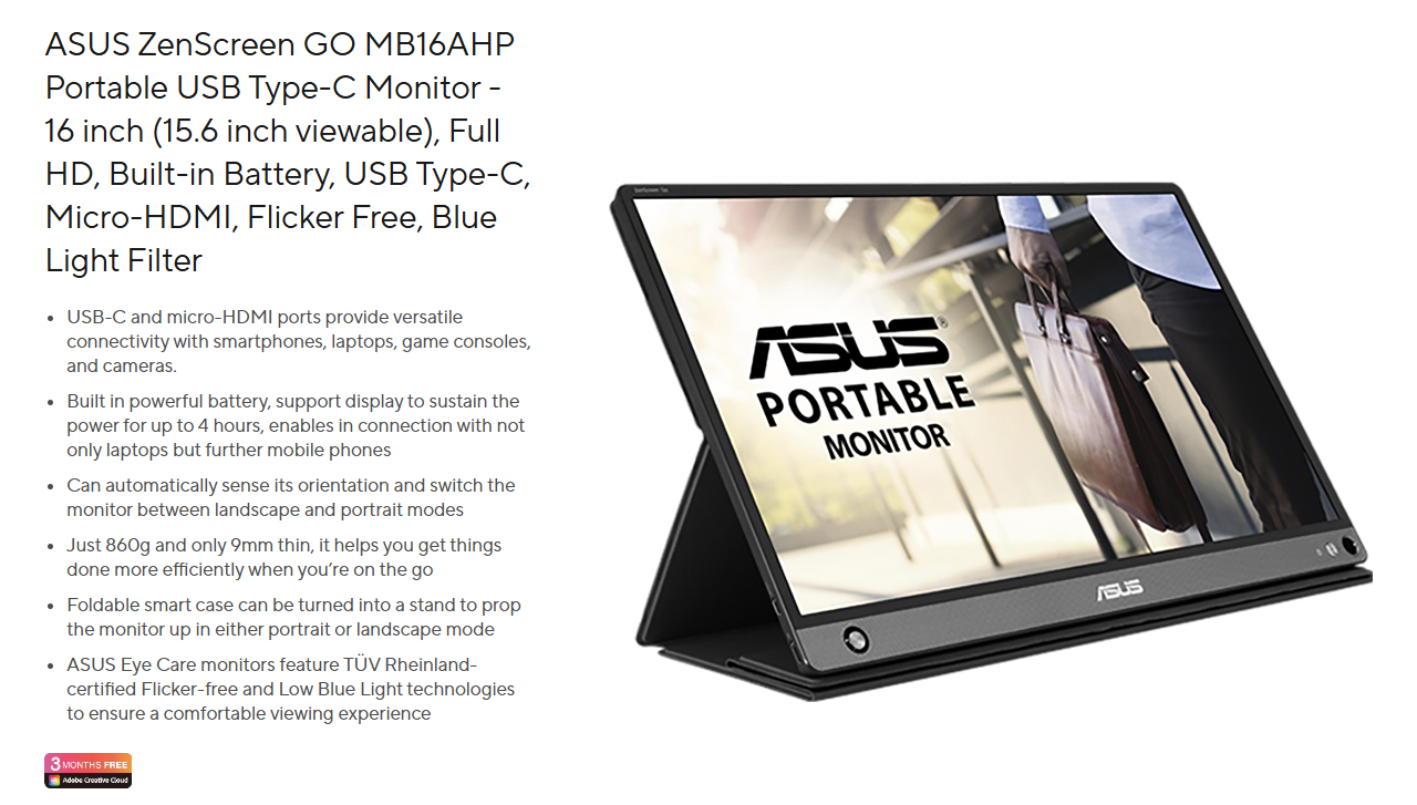 Màn hình Asus ZenScreen GO MB16AHP (15.6 inch/FHD/60Hz/IPS)