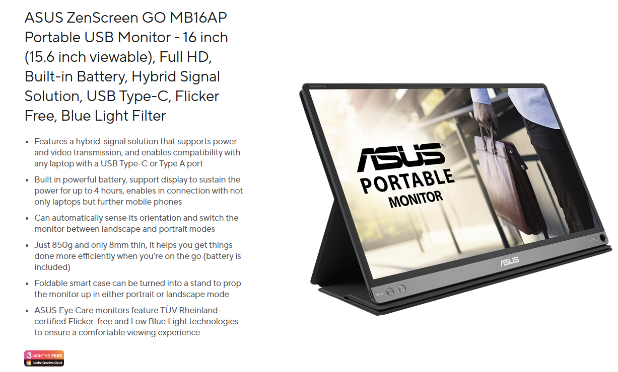 Màn hình Asus ZenScreen GO MB16AP (15.6 inch/FHD/60Hz/IPS)