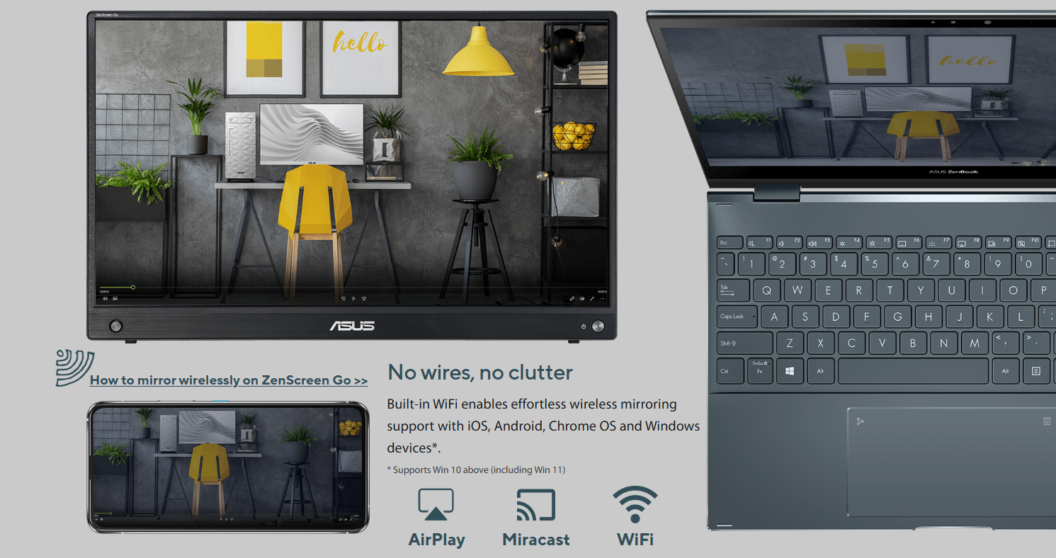 MB16AWP hỗ trợ truyền phát không dây qua Wi-Fi cho các thiết bị chạy iOS, Android, macOS và Windows. Bạn có thể phản chiếu màn hình điện thoại để xem video lớn hơn hoặc mở rộng màn hình laptop mà không cần loay hoay tìm cáp chuyển đổi, mang lại sự chuyên nghiệp và gọn gàng tuyệt đối.