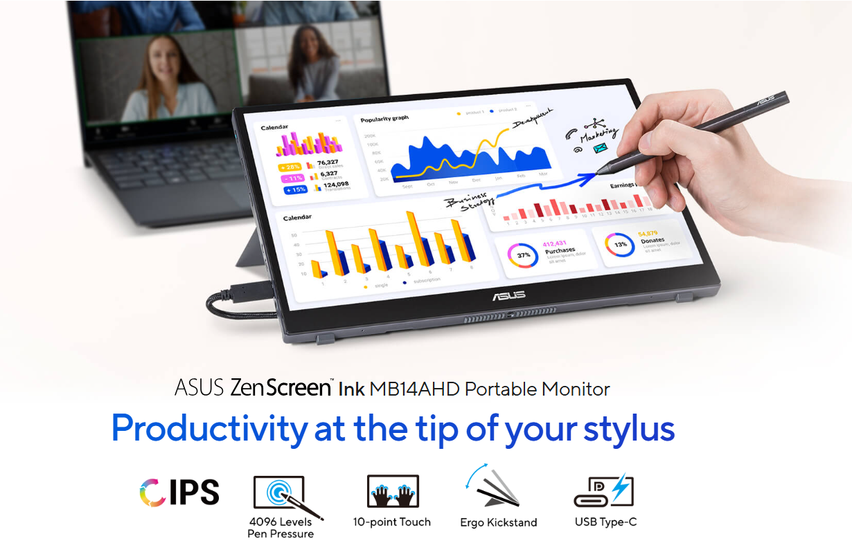 Màn hình Asus ZenScreen Ink MB14AHD không chỉ là một chiếc màn hình di động, mà là một bảng vẽ kỹ thuật số chuyên nghiệp di động. Đây là mẫu màn hình hiếm hoi tích hợp cả cảm ứng 10 điểm chạm và công nghệ bút Stylus MPP 2.0 (Microsoft Pen Protocol) với 4096 mức độ cảm ứng lực. Với kích thước 14 inch gọn gàng và chân đế vô cấp linh hoạt, MB14AHD biến mọi không gian từ quán cà phê đến máy bay thành một studio sáng tạo, cho phép bạn viết, vẽ và ký văn bản một cách tự nhiên nhất.