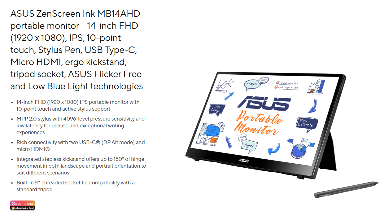 Màn hình Asus ZenScreen Ink MB14AHD (14 inch/60Hz/FHD/IPS)