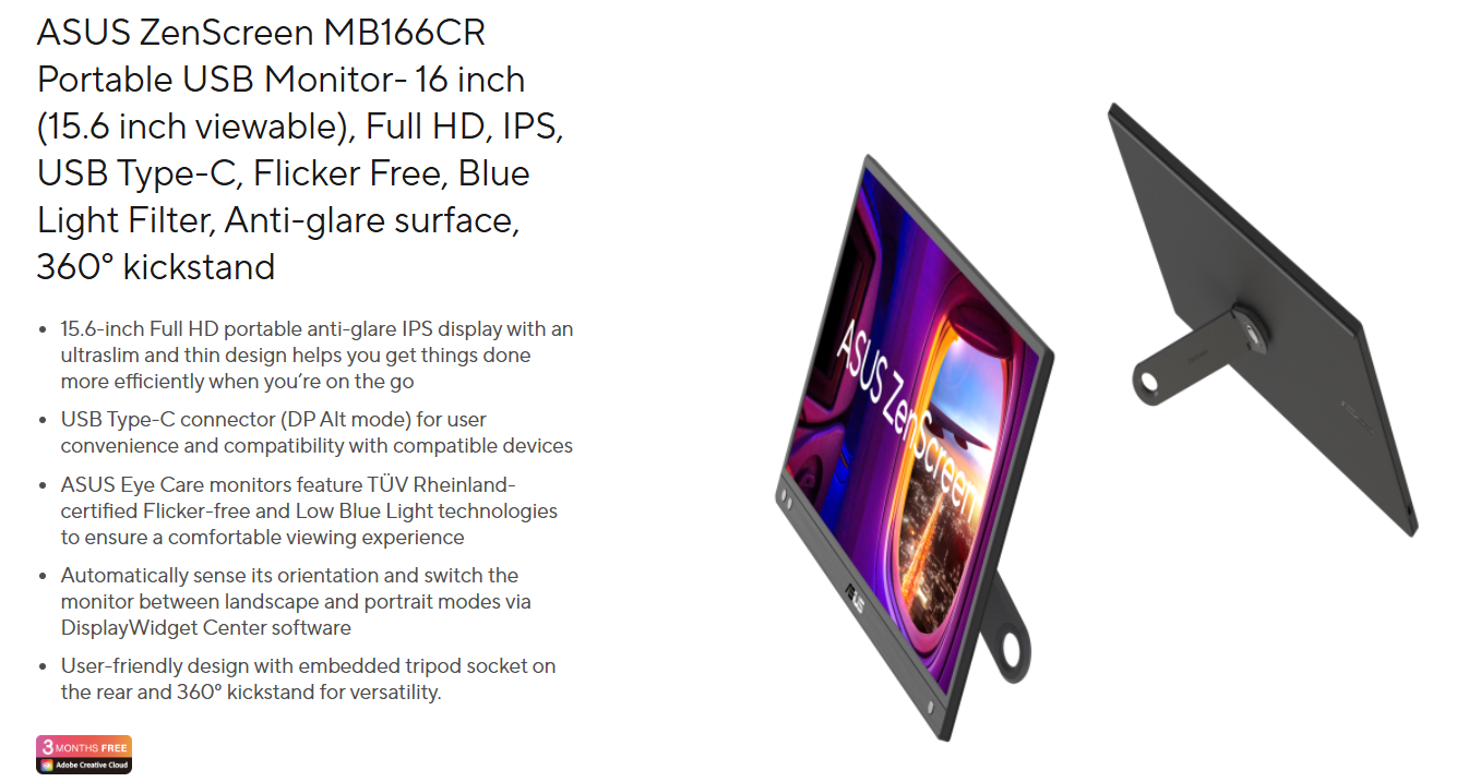 Mua ngay Màn hình Asus ZenScreen MB166CR tại BP STORE để nâng cấp dàn PC của bạn lên một tầm cao mới, bứt phá mọi giới hạn.