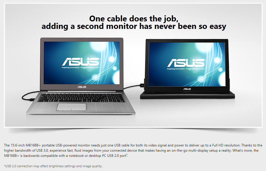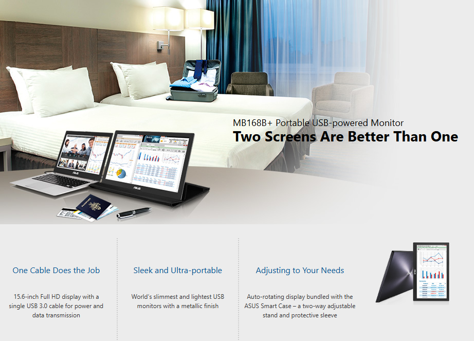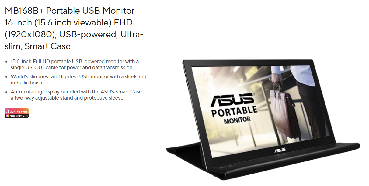 Màn hình Asus ZenScreen MB168B+ (15.6 inch/FHD/USB-powered/Ultra-slim)