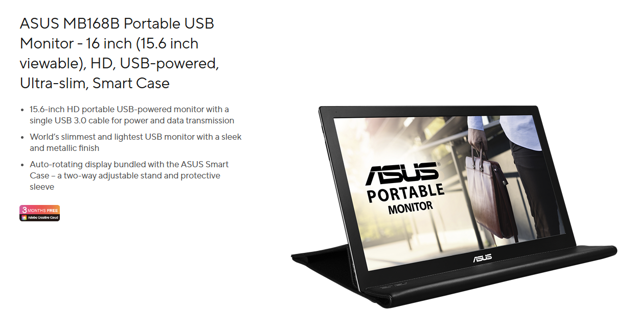 Màn hình Asus ZenScreen MB168B (15.6 inch/HD/60Hz/TN)