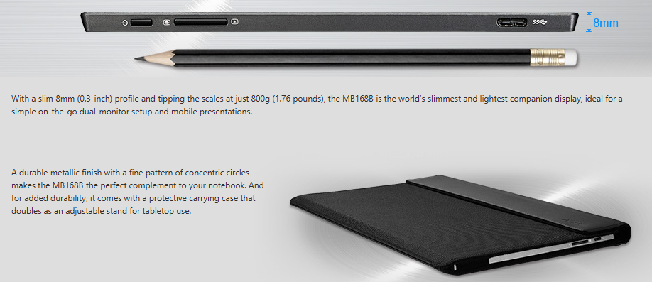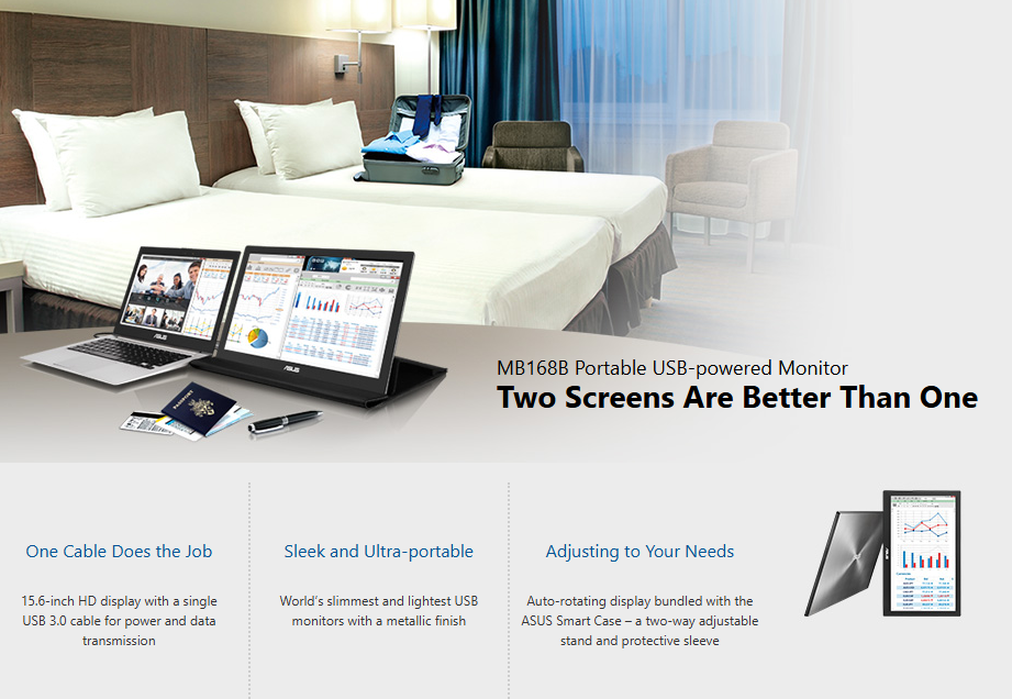Điểm mạnh nhất của MB168B chính là sự tiện lợi. Chỉ cần duy nhất một sợi cáp USB 3.0 để truyền tải cả dữ liệu hình ảnh và cấp nguồn trực tiếp từ laptop. Bạn không cần phải mang theo bộ sạc riêng hay tìm kiếm ổ cắm điện, giúp bàn làm việc tại quán cà phê hay trên máy bay luôn gọn gàng.