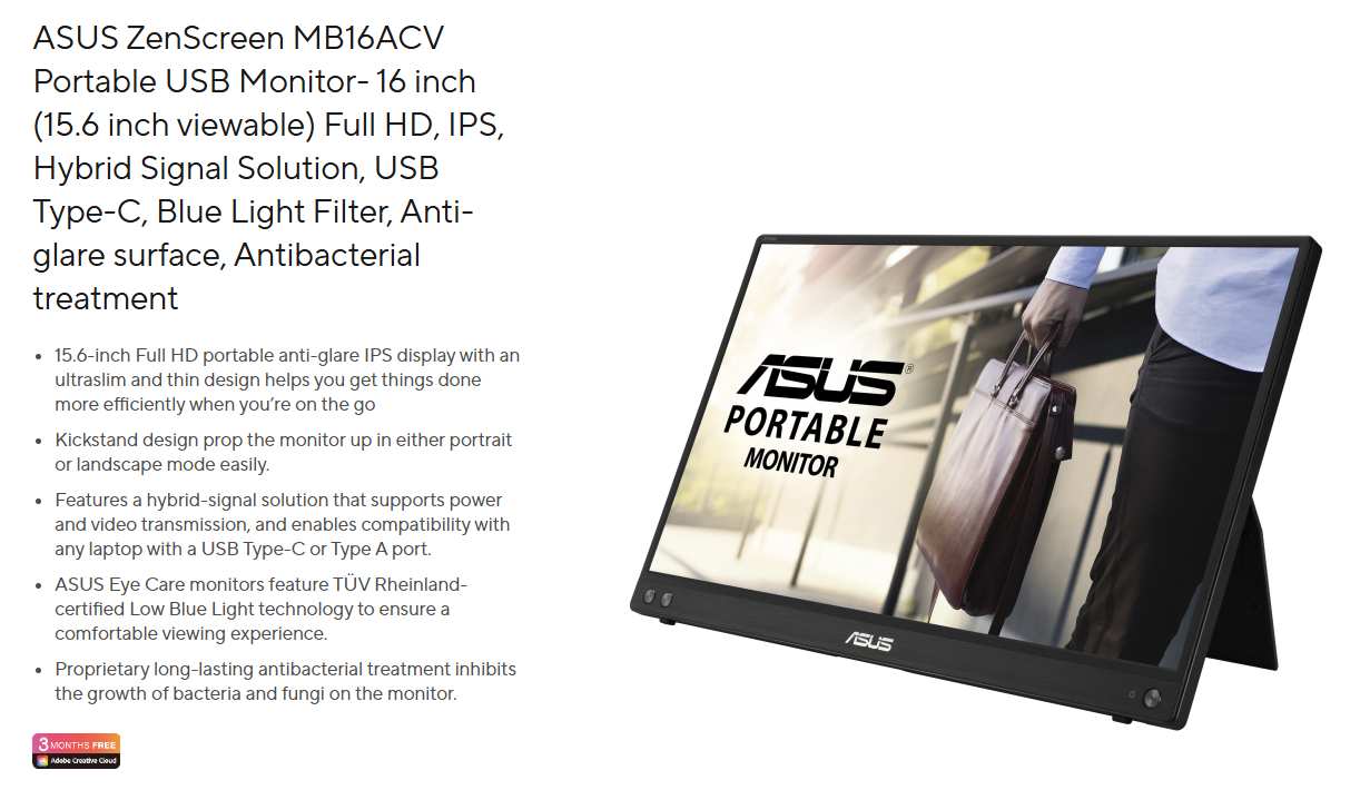 Màn hình Asus ZenScreen MB16ACV (15.6 inch/FHD/60Hz/IPS)