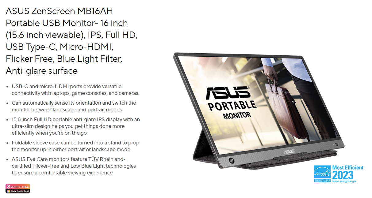 Màn hình Asus ZenScreen MB16AH (15.6 inch/FHD/60Hz/IPS)
