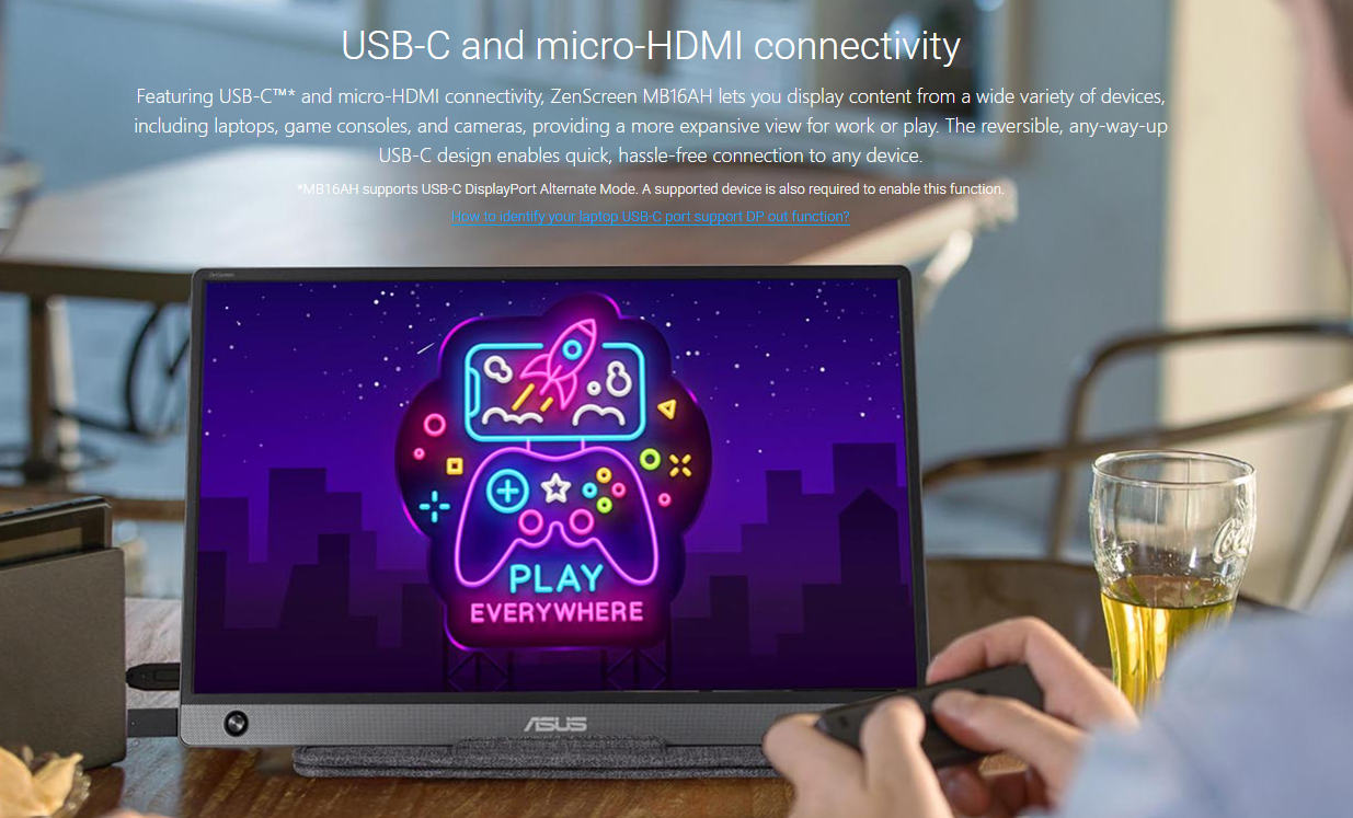 MB16AH giải quyết triệt để vấn đề tương thích. Cổng USB Type-C hỗ trợ giải pháp truyền tín hiệu lai (Hybrid-signal), trong khi cổng Micro-HDMI cho phép kết nối với các thiết bị không có cổng USB-C đời mới. Điều này biến MB16AH thành một chiếc màn hình di động "vạn năng", sẵn sàng trình chiếu từ máy tính bảng cho đến tay cầm chơi game.