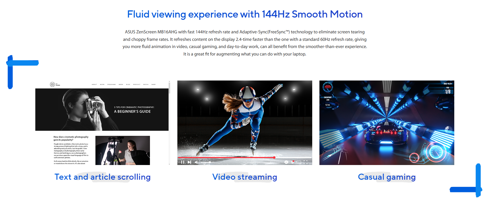 Khác biệt hoàn toàn với các dòng màn hình di động văn phòng 60Hz, MB16AHG sở hữu tần số quét 144Hz chuẩn gaming. Kết hợp cùng công nghệ FreeSync Premium, màn hình triệt tiêu hoàn toàn hiện tượng xé hình và giật hình, mang lại trải nghiệm mượt mà tuyệt đối cho các tựa game bắn súng (FPS) hoặc hành động tốc độ cao trên Laptop và máy chơi game cầm tay.