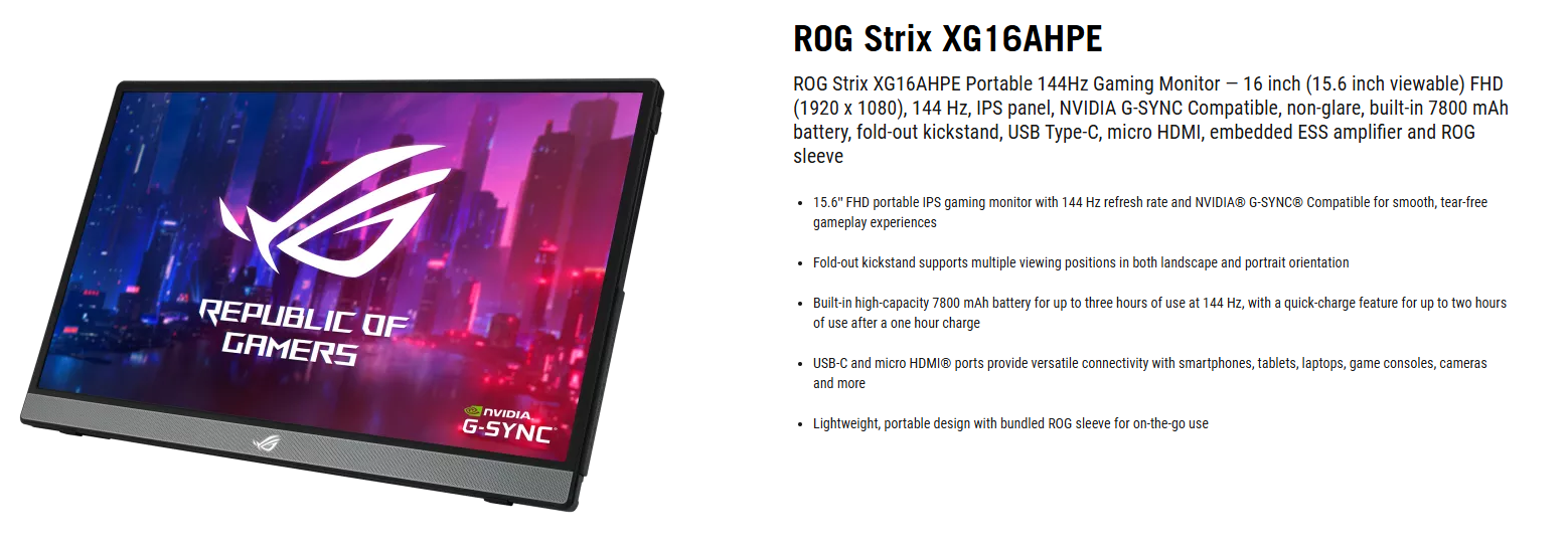 Màn hình Asus ROG STRIX XG16AHPE (15.6 inch/FHD/IPS/144Hz)