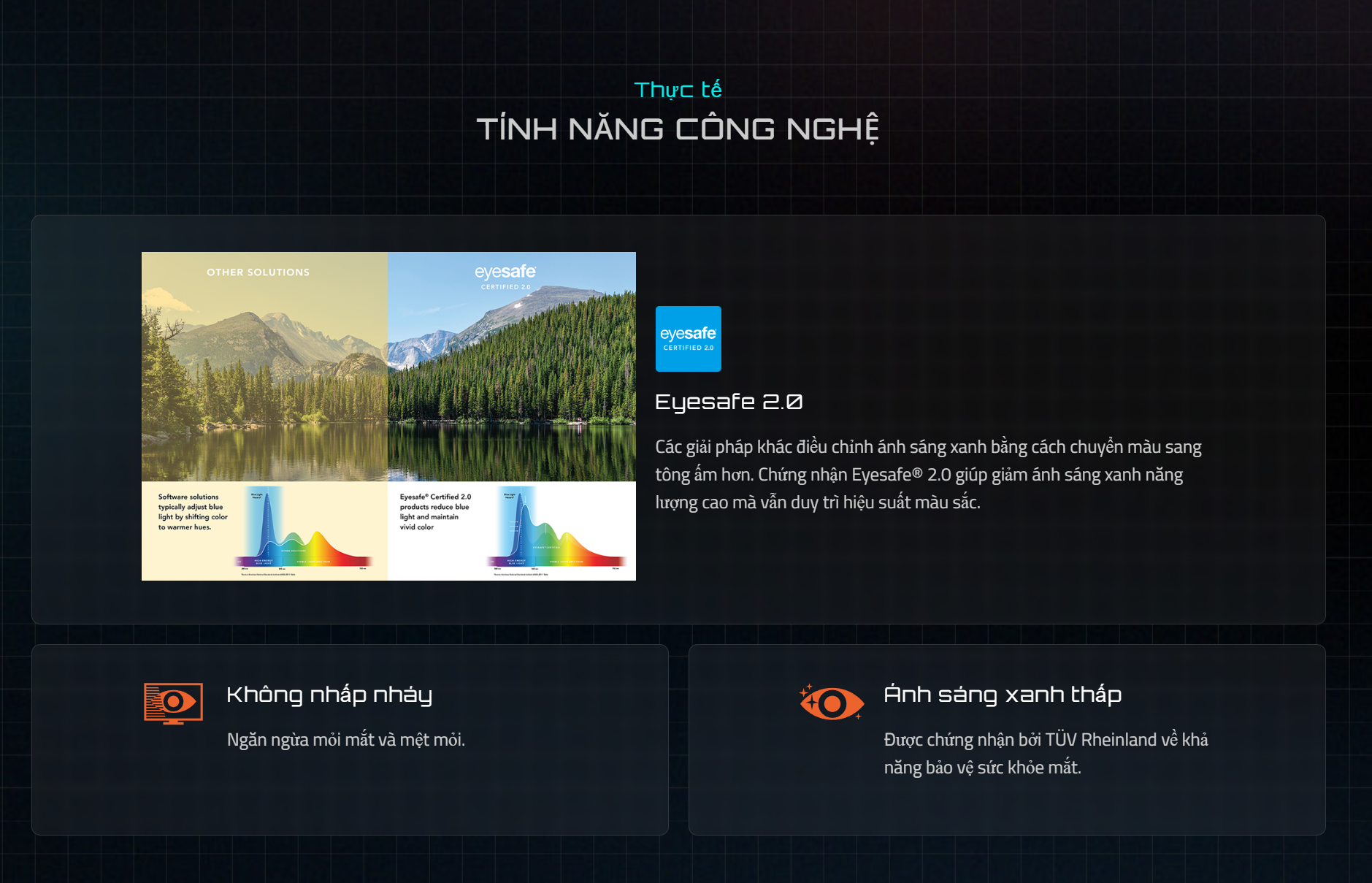 Tần số quét 240Hz và tốc độ phản hồi 1ms (GTG): Tần số quét siêu cao 240Hz đảm bảo mọi chuyển động trên màn hình đều cực kỳ mượt mà, không có hiện tượng giật lag hay xé hình. Thời gian phản hồi 1ms (GTG) giúp loại bỏ hiện tượng bóng mờ, mang lại hình ảnh sắc nét ngay cả trong các pha hành động tốc độ cao.