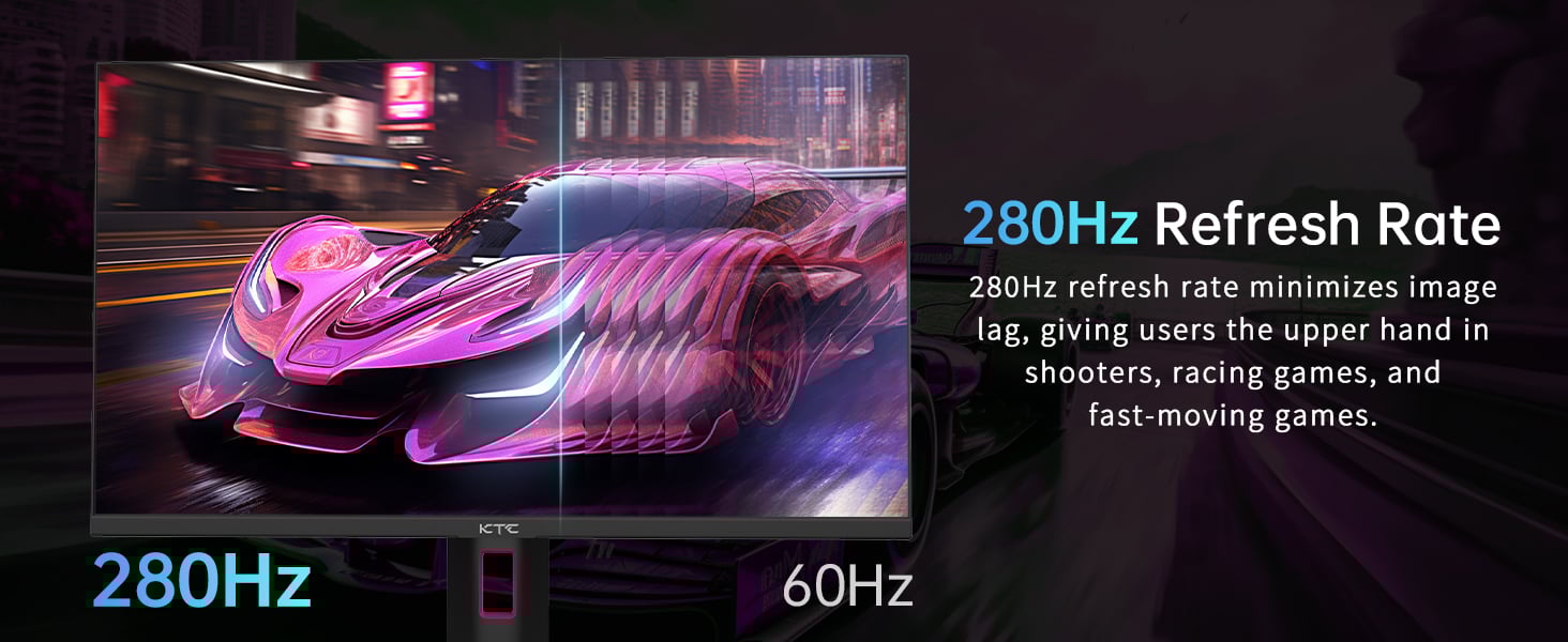 Màn hình KTC H27E22P mang đến tốc độ làm mới 280Hz, kết hợp thời gian phản hồi 1ms MPRT và 2ms GTG, loại bỏ hiện tượng nhòe hình, giật lag, mang lại trải nghiệm gaming FPS và eSports hoàn hảo.