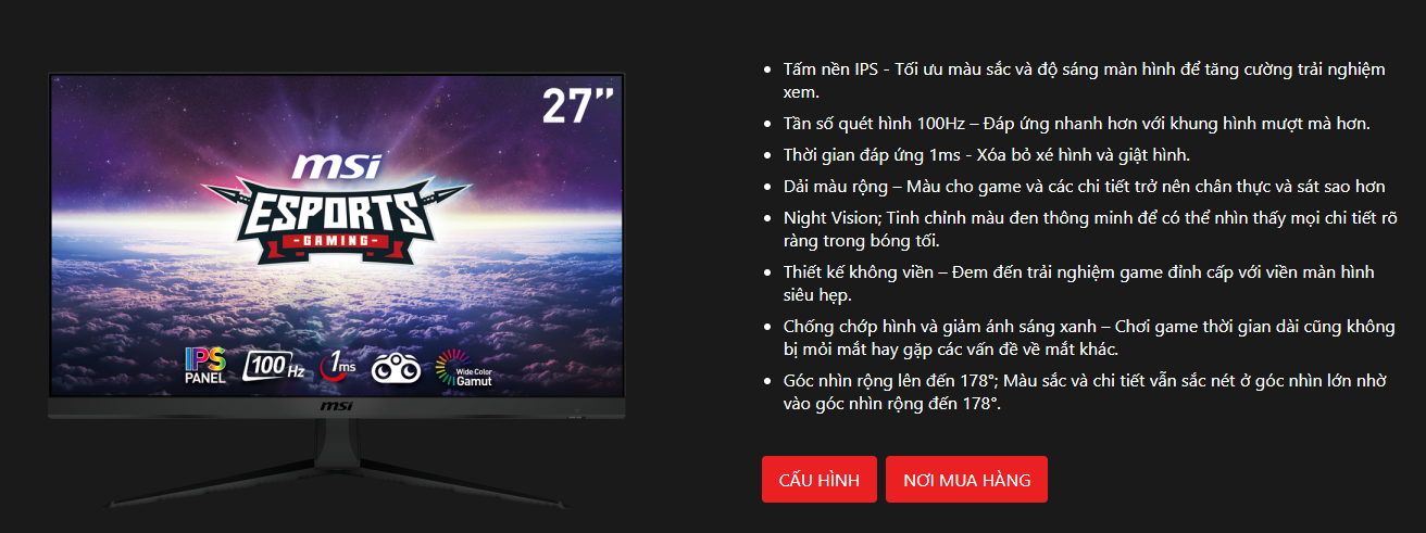 Mua ngay Màn hình MSI G2712V để trải nghiệm sự khác biệt. Liên hệ ngay BP Store để nhận báo giá tốt nhất!