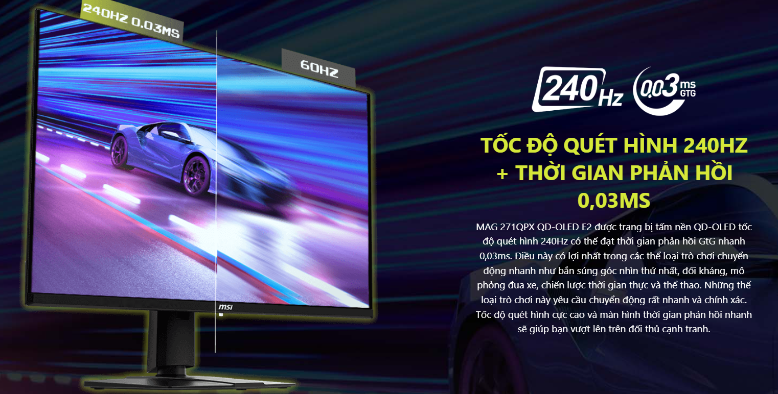 Tốc độ phản hồi 0.03ms & Tần số quét 240Hz