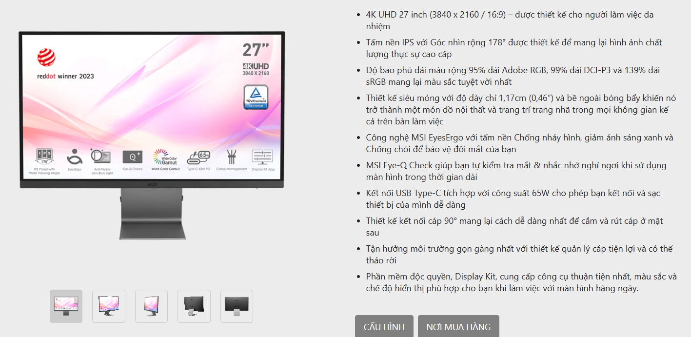Màu sắc: 1.07 tỷ màu (10-bit), 99% DCI-P3