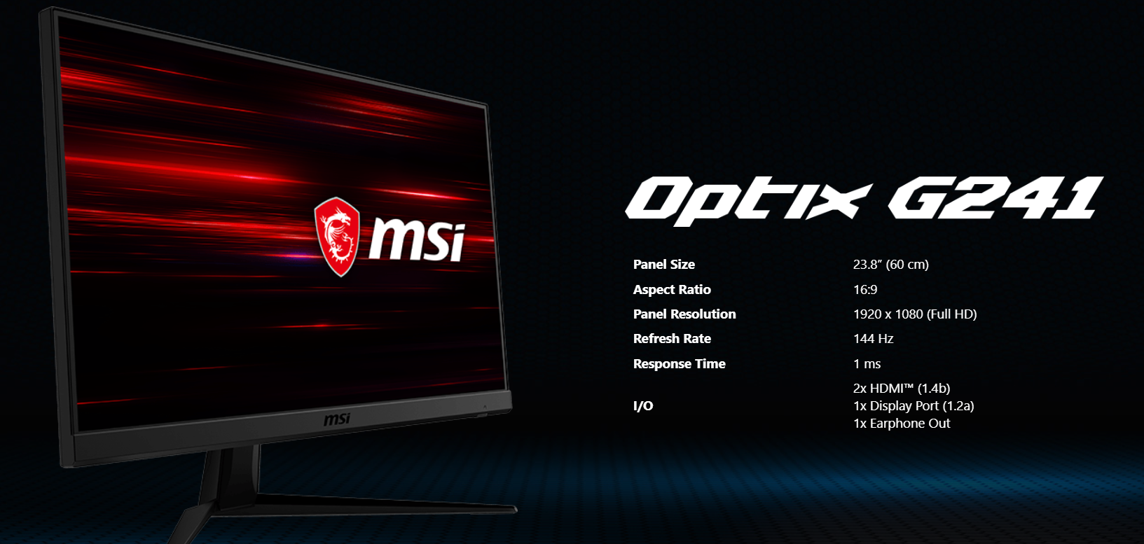 Màn hình MSI Optix G241 (23.8 inch/ 144Hz/ FHD/ IPS)