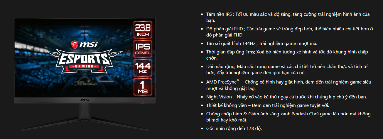 Tính năng hỗ trợ: AMD FreeSync, Night Vision, Anti-Flicker, Less Blue Light.